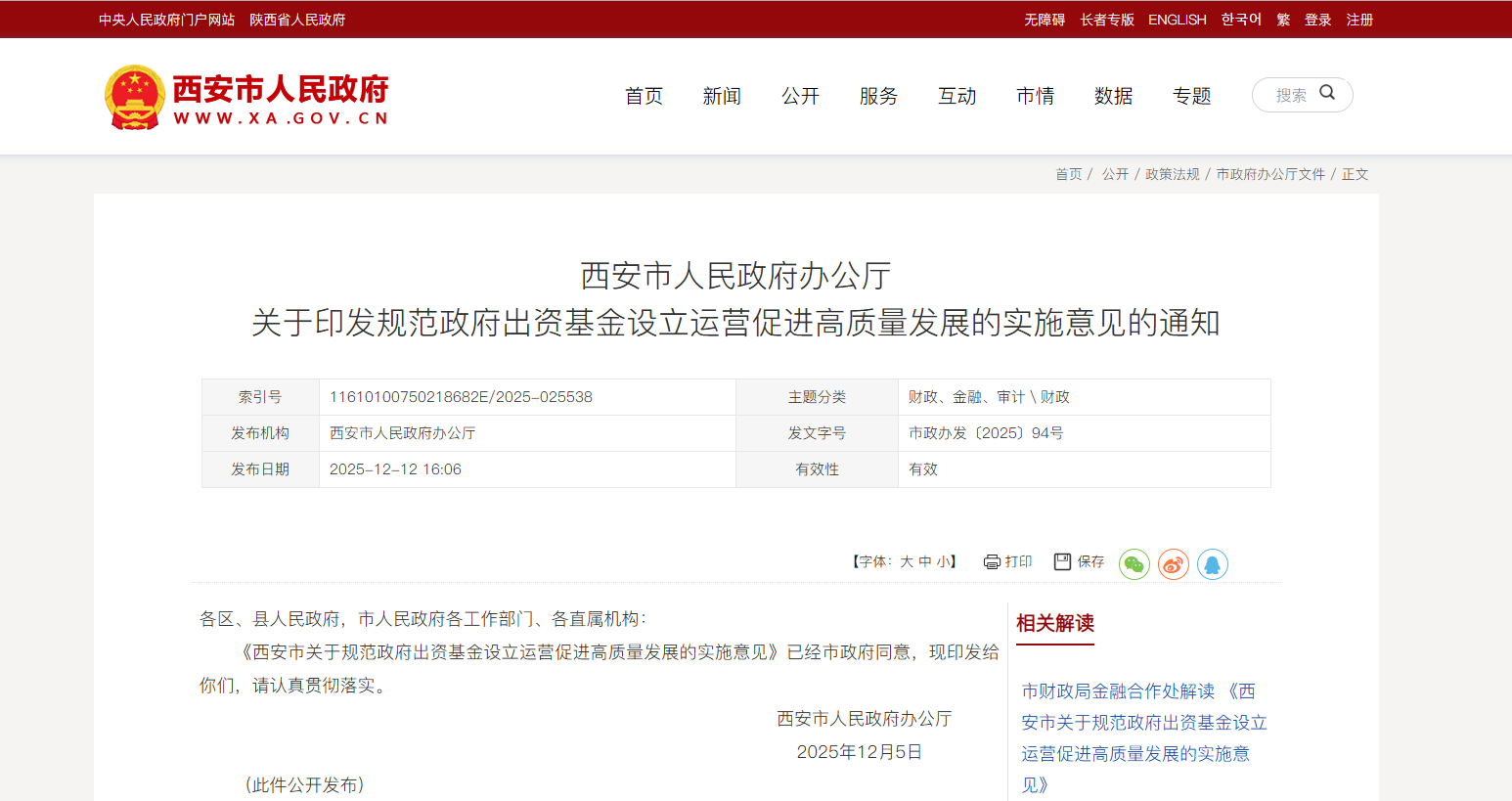 消息,近日,西安市人民政府办公厅发布关于印发规范政府出资基金设立运营促进高质量发展的实施意见的通知。