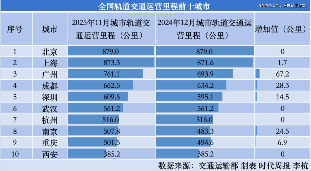 进入12月,多个城市陆续开通新的轨道交通线路,上述城市排名可能会出现相应调整。